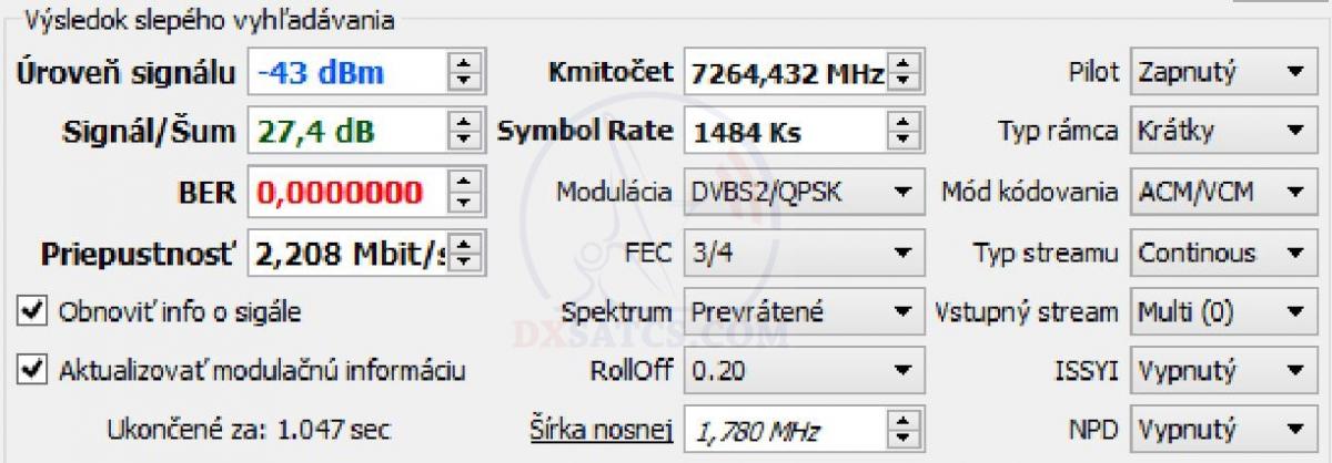 elm. vlnení vo frekvenčnom spektre od 7250 do 7 750 MHz a publikovaniu modulačných parametrov niektorých dátových paketov,