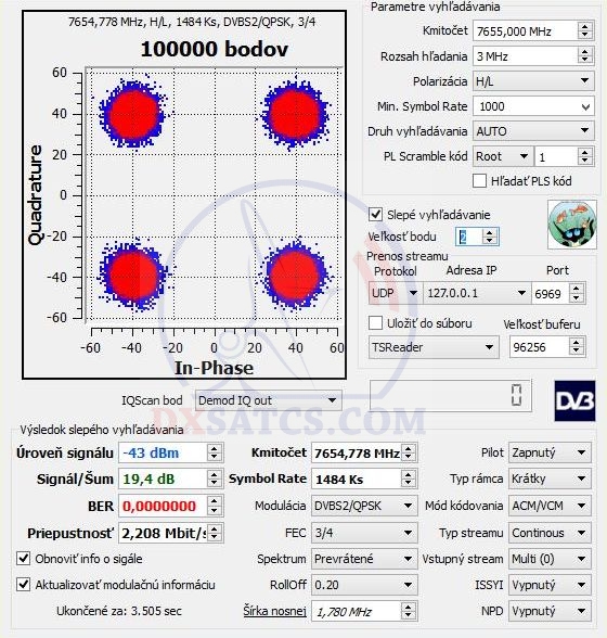 demonštruje aj vizualizácia ideálnej kvality v podobe štyroch stavov konštalácie QPSK,čo len potvrdzuje fakt že mimoriadne