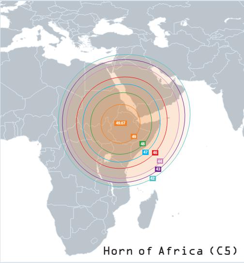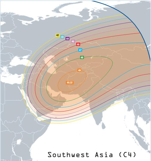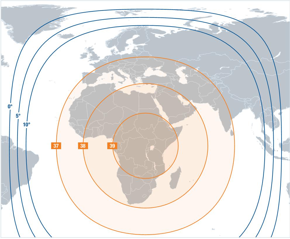 X-band coverage from Eastern Brazil and the Atlantic Ocean,across Europe,Africa and the Middle East as far east as Singapore
